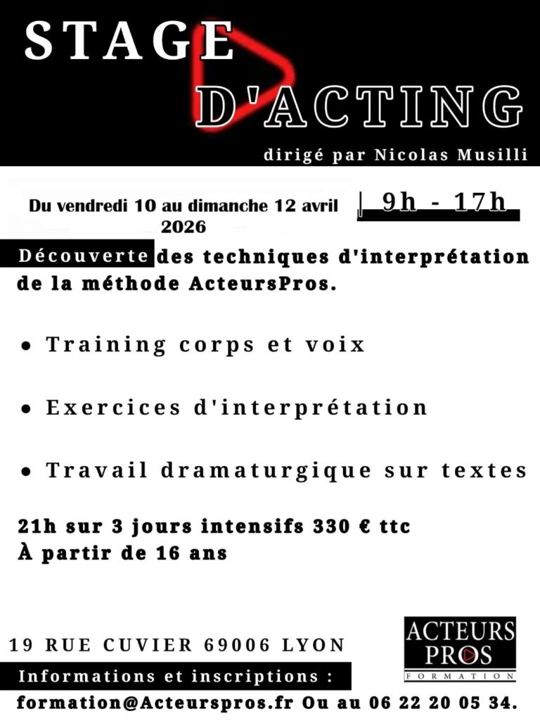Pour plus d’informations, veuillez nous contacter au 09.80.99.76.70 ou au 06.22.20.05.34, ou encore, par mail à formation@acteurspros.fr